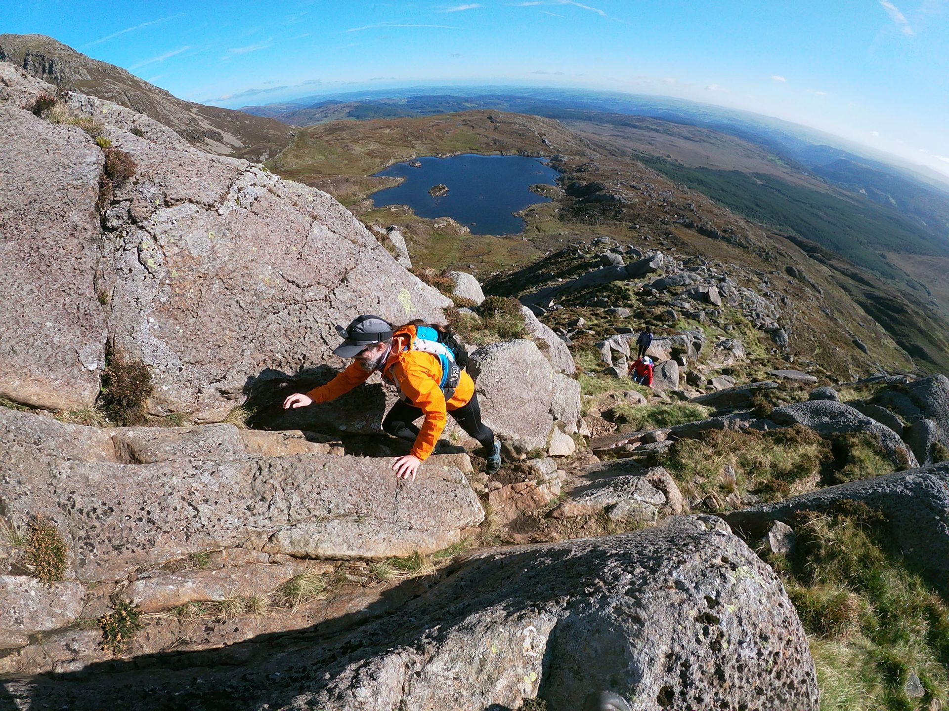 Many of us found ourselves with more time on our hands as lockdown and travel restrictions took grip and the country battled to contain the Coronavirus pandemic that spread across the world. Much of the National Park in Snowdonia closed to ensure there were no undue pressures on local emergency and rescue services and the beloved mountains were off limits for the time being. Running through lockdown was a good opportunity to gain an intimate knowledge of all the footpaths in the local area, often running through thickets of brambles and gorse on paths that had been long since forgotten. Living on the edge of Snowdonia National Park at the outlet of the glacially formed Llyn Padarn, many of my lockdown routes passed a brass plinth that speaks of the evolution of the scenery in front of your eyes. Many of my hours passed enjoying the mountains, reflecting so perfectly on the lake when the air was still, watching how the light morphed high up as the sun started setting on another day of lockdown. It was on one of these many nights that I started to trace the line of the skyline and imagined running a route from the end of the lake across all the mountain tops around Llyn Padarn. As many people delved into cookbooks, looking for the next bake, or updating general knowledge preparing for the next zoom quiz, I hunched over my kitchen table with the map of Snowdonia laid out tracing the same line I had envisioned earlier. What I had been tracing was the hydrological water catchment for Llyn Padarn, twelve peaks where rain drops run from its summits onto their rocky slopes, down steep runnels into streams and rivers feeding the lake, flowing right to the outlet where I had been admiring one of the best views in the National Park. With the levels of Coronavirus infections reducing, on another unusually fine Friday afternoon the news from the Welsh Government I had been waiting for was delivered in their regular briefing. The mountains were going to open in their entirety and it felt fitting to commemorate the opening by running the skyline that I had so often admired. To follow the water catchment the route first ascends gently on roads through the villages of Fachwen and Dinorwic and into the local quarries. Described by some as a blight on the landscape, the sometimes otherworldly looking vistas are a reminder of the industrial era when North Wales was home to one of the most important slate producing areas. Ascending through endless slate piles, up inclines, past buildings and metal work that once would of been integral to the workings you get a great sense of how hard and dangerous the work for the miners must have been. After leaving the quarries behind, already high in mountain terrain, the summit of Elidir Fach was soon under my feet. A further short pull brought the rocky summit of Elidir Fawr, with its jagged grey gritstone that is in contrast to the red sedimentary siltstone on the flanks leading to the summit. The hard work initially getting up high was rewarded heading along the spectacular ridge to Mynydd Perfedd and sublime views to Marchlyn Mawr reservoir, Ogwen valley and one of North Wales most iconic mountains, Tryfan. The position of the Glyderau with mountain ranges on either side gave a big mountain feel to the summits of Foel-goch and Y Garn before descending towards Twll Ddu, more commonly known as Devils Kitchen named due to the sinister plume of smoke rising from a huge crack in its cliffs. Instead of descending into the depths of the cauldron a steep ascent up scree slopes of Glyder Fawr was necessary which felt like traveling without moving as my feet slid from underneath me. Descent from the summit was via the red route that winds its way south through complex terrain passing boulders with a faint spray painted red dot leading the way. The views across the valley to the classically shaped Crib Goch were spectacular and left me in no doubt that the next section contains some of the best scrambling terrain in North Wales. Pen Y Pass was a welcome respite and a chance to grab a snack and recharge my batteries before the crux of the run. The going got tough as I made my way up from Pen y Pass with the technical, engaging scramble up the initially broad East ridge that converges to an airy ridge walk up to Crib Goch’s summit. The fun didn’t stop there though continuing along the summit ridge which has some spectacular positions where it is not uncommon to see people traversing it “Au Cheval” (like a horse) before yet more first class scrambling to reach the grassy summit of Crib y Ddysgl. The way forward was made up of skirting impressive Cwms that are the product of scouring in the late Ice Age that ended some 10,000 years ago. The geology of the Cwms are synonymous with glacial activity in Snowdonia with the mountains having two distinct faces, grassy slopes facing South-West and steep craggy ones facing North-East. After completing the technical section where my thoughts were solely on the next foothold and handhold as you traverse a couple of Snowdon’s giants its a welcome respite, even with tired legs, to run up and down the grassy summits of Moel Cynghorion, Foel Goch, Foel Gron and Moel Eilio. Appreciating the great views of the Nantlle valley and the Menai Straits, I found myself in a state with no thoughts running through my mind, no stresses, no to do lists, nothing. Running has long been associated with controlling stress and boosting the bodies ability to deal with mental tension. Combining that with the benefits of being in the mountains has long been vital to my own mental wellbeing and as I continued my run I could feel the mountains cleansing my mind with every step, oh how I had missed the mountains. Running down from Moel Eilio skirting another set of slate quarries the final summit of Cefn Du was soon arrived at with the sudden realisation that there are no well worn paths from its summit and so a degree of heather bashing was required. Followin